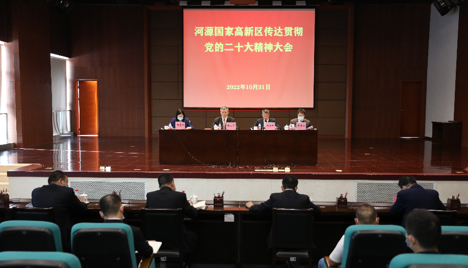 10月31日,河源国家高新区召开传达贯彻党的二十大精神大会,专题传达贯彻党的二十大精神,认真落实省委常委会会议、全省传达贯彻党的二十大精神,以及市委常委会会议、全市传达贯彻党的二十大精神。高新区党工委书记骆世文作学习贯彻有关工作部署,党工委副书记、管委会主任陈志中传达党的二十大精神及省市有关会议精神。高新区全体干部参加大会。
