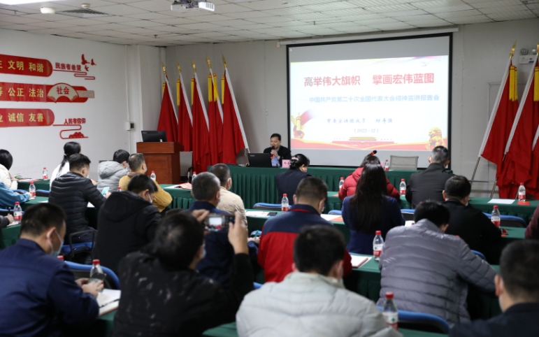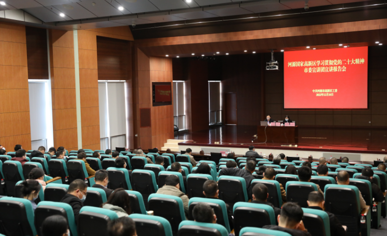 12月16日,河源国家高新区举行学习贯彻党的二十大精神宣讲报告会,邀请市委宣讲团成员、市档案馆馆长邱寿强作专题宣讲报告,帮助党员干部职工准确理解和深刻把握党的二十大精神思想内涵和精神实质,切实将党的二十大精神落实到高新区又快又稳高质量发展全过程。