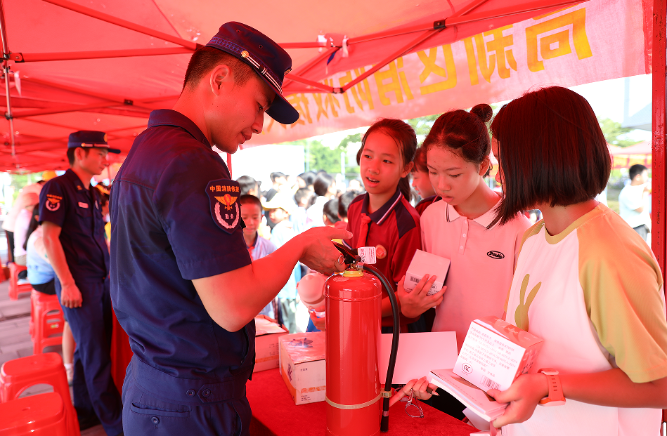 各个科普宣传摊位挤满了人。乔丰科技公司的工作人员向学生们展示了3D打印机及打印出来的产品;小勇科技公司的工作人员指导学生如何与小勇机器人进行对话;消防救援大队的队员现场讲解如何使用消防栓;深河门诊部的医护人员给学生们检查视力……活动丰富多彩,为学生们埋下一颗科学的种子。