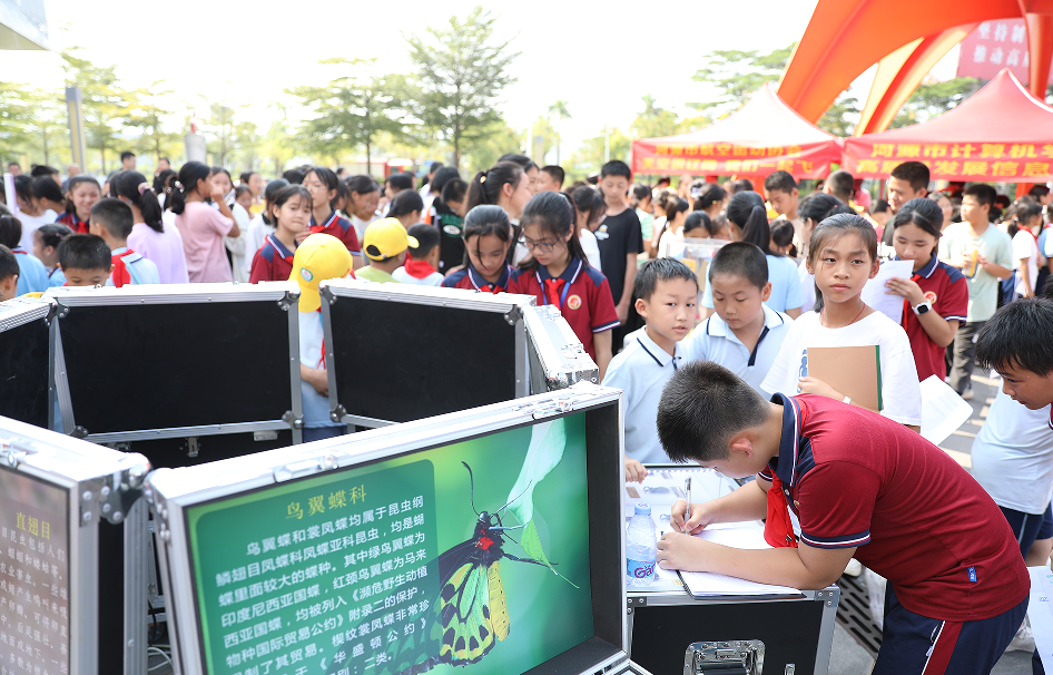 科普展览区展示了河源国家高新区科技企业的创新成果,如新技术、新产品、科研成果等。科普知识展示包括反电信诈骗宣传、水资源保护宣传、工业科普知识、消防知识、义诊、健康知识宣传、知识产权保护等。有的学生观看科普知识宣传,还认真记录学习笔记,现场400多份科学知识有奖答卷也被学生们“抢答”一空。
