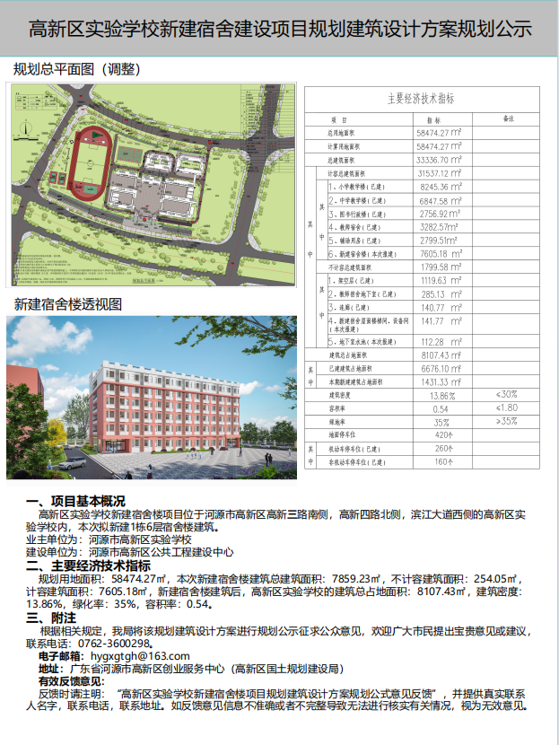 有效反馈意见:反馈时请注明为“高新区实验学校新建宿舍建设项目规划建筑设计方案的公示意见反馈”,并提供真实联系人姓名、联系电话、联系地址。如反馈意见信息不准确或不完整导致无法进一步核实有关情况,视为无效意见。