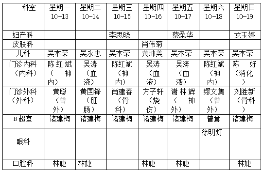 深河门诊部医生工作安排表10月13日-10月19日