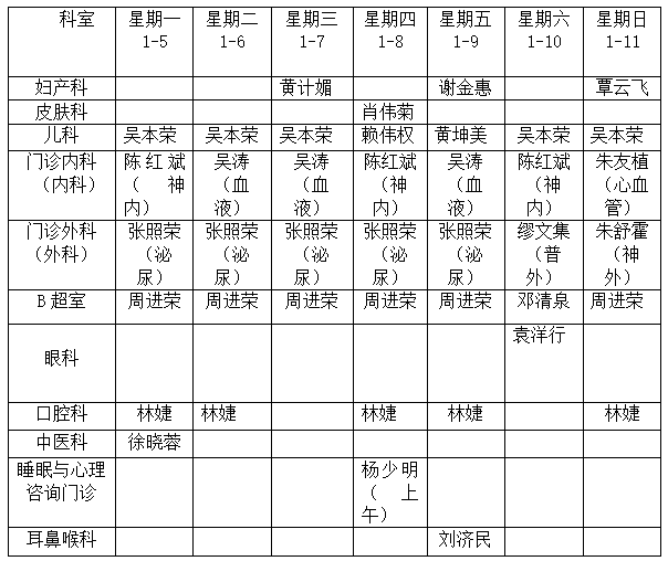 深河门诊部医生工作安排表1月5日-1月11日