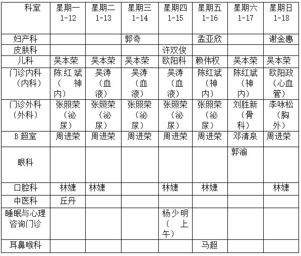 深河门诊部医生工作安排表1月12日-1月18日