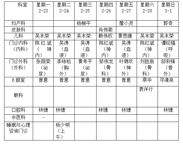 深河门诊部医生工作安排表2月23日-3月1日