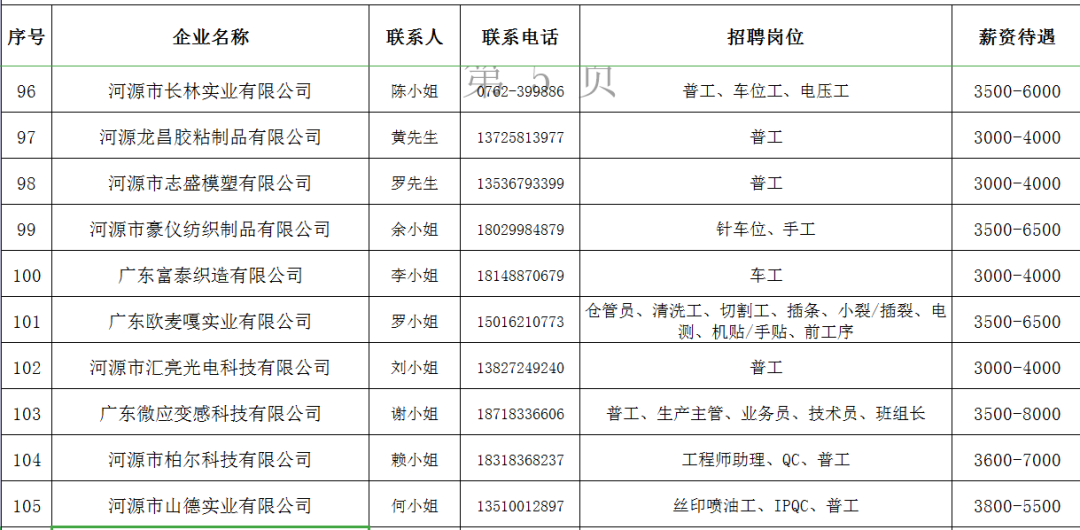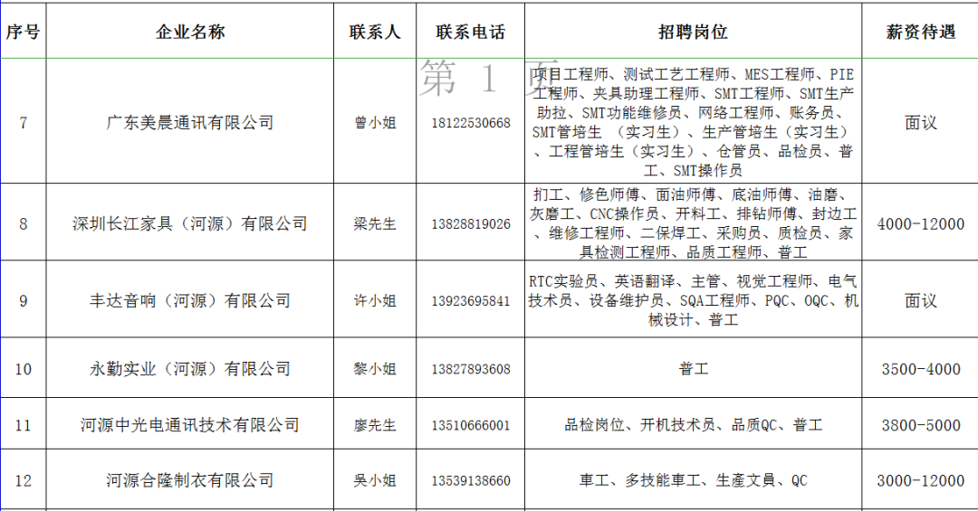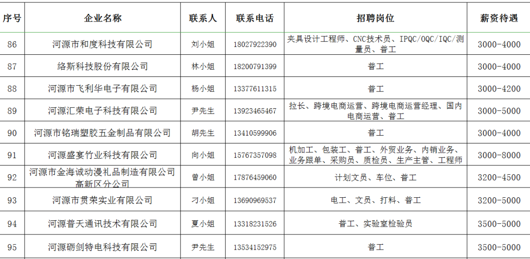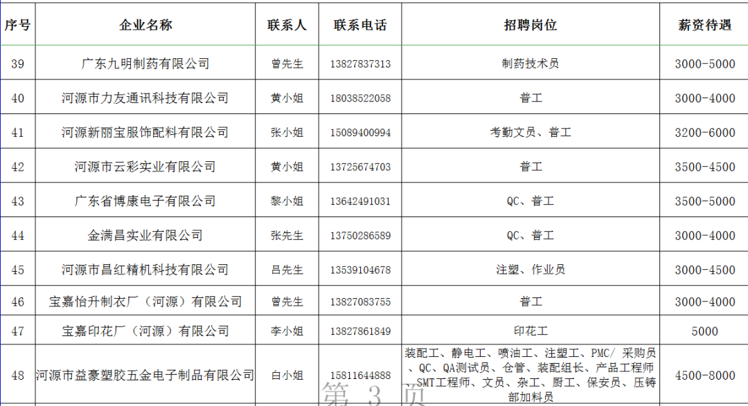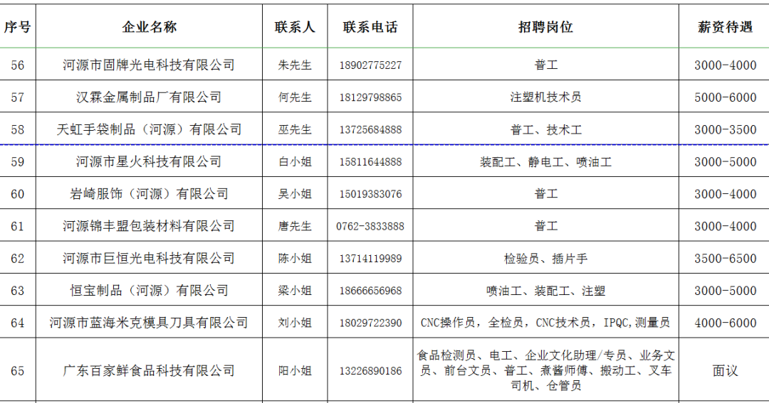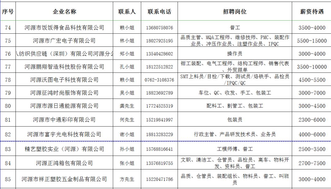 目前,河源高新区众多企业向广大求职对象抛出橄榄枝:提供岗位18000个;开出较高的月薪水平:中兴通讯3500-6000元,西可通信2500-12000元,农夫山泉4000-8000元,中启通讯4000-7000元,河源合隆制衣3000-12000元等,不一而足。