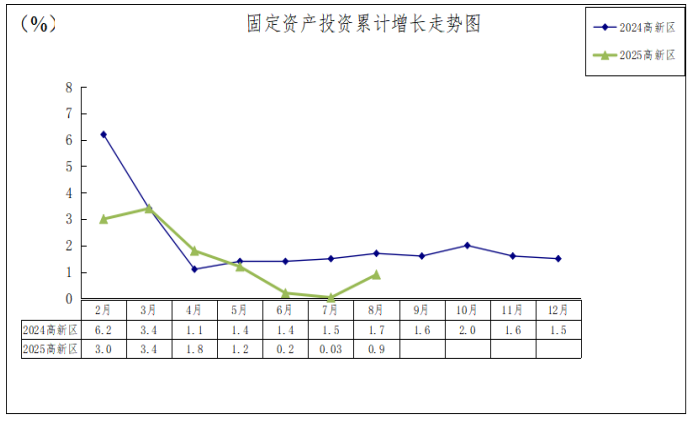 四、高新区固定资产投资比上年同期增长0.9%;工业固定资产投资比上年同期下降0.9%;工业技改比上年同期下降25.3%。