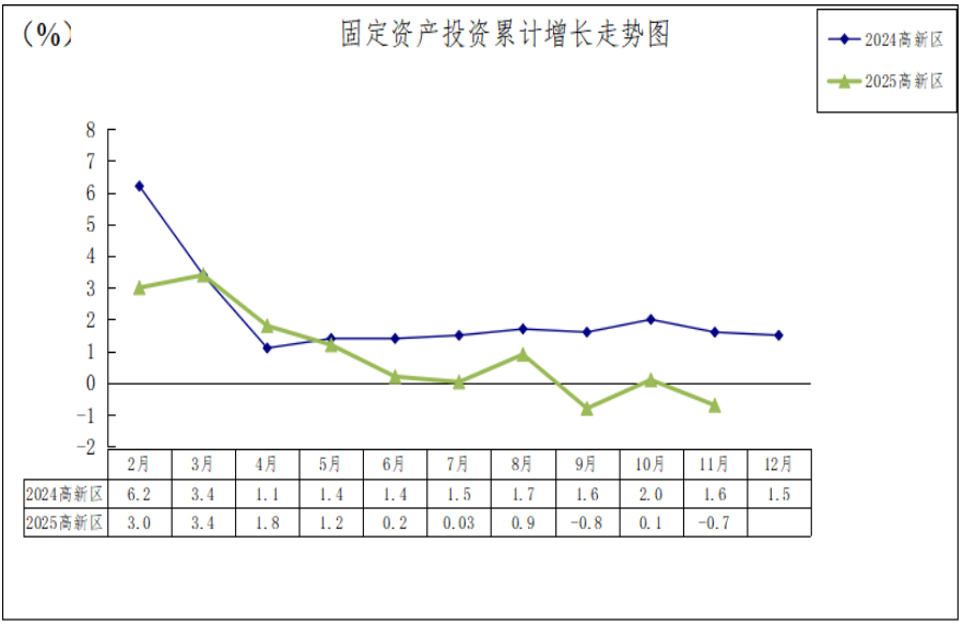 四、高新区固定资产投资比上年同期下降0.7%;工业固定资产投资比上年同期下降3.8%;工业技改比上年同期下降31.6%。