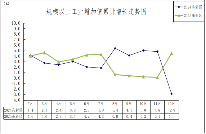 一、 高新区企业规模以上工业增加值比上年同期增长4.5%。