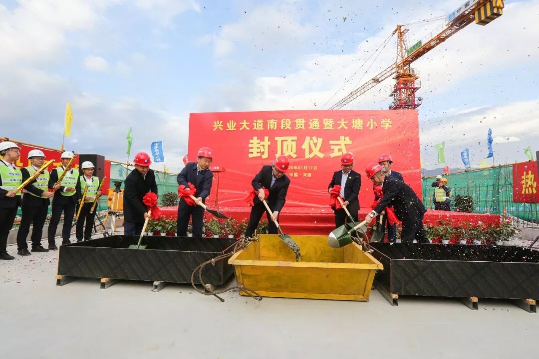 在项目建设期间,河源高新区有关部门、项目团队、中建八局共同努力,克服困难,仅用三个月时间完成封顶,并计划于今年7月份竣工交付使用。届时,硬件环境更好、学位更多的大塘小学将以崭新面貌呈现给大家。