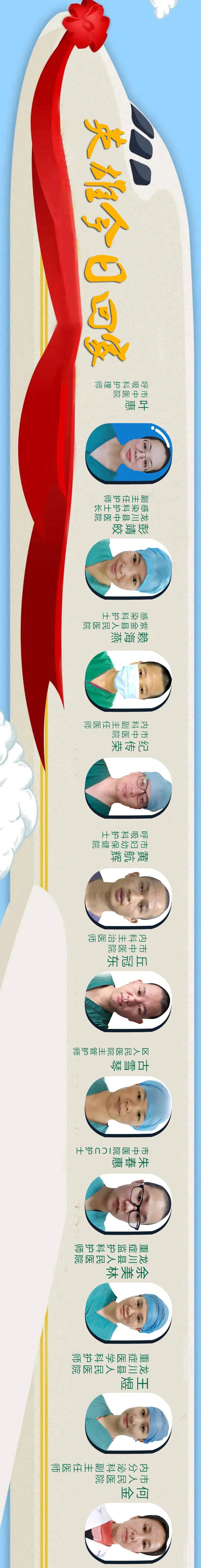 ▲19时30分,随着警笛长鸣,我市首批支援湖北武汉医疗队乘坐的大巴驶出城北高速路口,交警、志愿者、媒体记者夹道欢迎,交警行致敬礼,志愿者、市民、媒体记者高呼:“欢迎英雄回家!” ▲河源全城亮灯,向最美逆行者致敬。 2月9日和2月11日 在疫情最为吃紧的阶段 32名河源“白衣战士”千里出征,驰援湖北 30多个日日夜夜里 他们用生命守护生命 用希望点亮希望 ▼ 市委、市政府指出,市援湖北医疗队积极响应习近平总书记重要指示精神和党中央、省委号召,义无反顾、挺身而出,奔赴疫情防控主战场,为打好武汉保卫战、湖北保卫战作出了积极贡献。各位队员充分展现了医者仁心的崇高精神,充分展现了河源医务工作者的良好形象,值得全市党员干部学习。希望各位队员继续保持饱满的精神状态,以一流的工作作风,更加出色的工作业绩,为我市“示范区”“排头兵”和“两个河源”建设再立新功! 千里归来,英雄们有何感想和心愿? 一起来听听 于红涛:我就想尽快恢复正常的工作和生活,回到我的岗位上继续投身我热爱的医疗事业。 李焕夷:我已经一个月没有看到老婆小孩了,一不留神我的孩子都已经飞快长大、成熟,等隔离观察期一结束,我要赶快和家人团聚。 完成使命,平安归来 他们有何感想和心愿,最想做的事是什么? 于红涛:我就想尽快恢复正常的工作和生活,回到我的岗位上继续投身我热爱的医疗事业。 李焕夷:我已经一个月没有看到老婆小孩了,一不留神我的孩子都已经飞快长大、成熟,等隔离观察期一结束,我要赶快和家人团聚。 欧家琪:这段时间我的妈妈生病很重,已经进了ICU,我想赶快腾手回去亲自照顾好妈妈,让她也早点恢复健康。 何金:疫情结束了,我要去爬山,高呼:自由万岁!我特别想对家人说的一句话:抱一抱,好幸福啊! 温智杰:疫情结束后,我最想吃上妈妈做的饭菜!此刻最想对家人说:我想你们!准备好吃的等我! 黄航辉:疫情结束后想回趟老家看看爷爷奶奶,随便感受一下大自然的光和热,任阳光撒满脸颊,大口吸气;我特别想对家人:我回来了,走,咱们回家! 纪传荣:摘下口罩,漫步山间,自由呼吸,闻花香,哼小曲。最想对家人说的话:想你们!! 丘冠东:等待疫情结束,我希望能回家陪陪我的家人,尤其是我的父母。同时最想对家人们说:谢谢你们的支持与“牵挂”,我想吃妈妈养的家鸡的鸡腿。 尽管医疗队员们还没回到家 但家属们已按捺不住雀跃的心情 憧憬着与亲人团聚的幸福时刻 一起来听听他们的心声 何金的丈夫骆宵:“没准备什么大餐,一家人平平安安坐在一起吃饭、唠家常,就是最大的幸福。老婆,我在家等着你回来。” 沈晓如的丈夫赵科:“对于我来说,妻子平安归来就是最幸福的事。待你回家后,我们一家人去看桃红柳绿吧。” 周俊杰的妻子田丹:“终于盼来你要回家的消息,爸妈说要做几桌好菜给你补补;孩子说要给你按摩捶背;而我的惊喜要暂时保密哦。你能平安回家就是我们最大的幸福!” 李焕夷的妻子刘振雁:“祝贺你圆满完成抗疫任务,女儿说要奖励你一朵小红花,她说你是最棒的爸爸!亲爱的,你是我们的骄傲,是儿女们的榜样,我们爱你!” 王爱宏的丈夫王俊峰:“你主动申请上战场,作为丈夫,我理解你的决定是出于医者的职责,国家的需要。老婆辛苦了,你是我们全家的骄傲!” 陈嘉平的妹妹陈嘉琦:“想把你比作樱花,象征着希望,你却有着木棉花的坚强。家庭团聚延期,爱却不延期,这份大爱只为守住人民的岁月静好,你是世界上最美的人!” 欧阳慧的丈夫黄小明:“至爱的老婆,你是我们的骄傲;是儿女的榜样!借此说句‘我爱你,老婆!平安回家!’,一辈子为你煮鸡蛋面!” 请记住英雄们闪闪发光的名字 和最美的脸庞 ▼