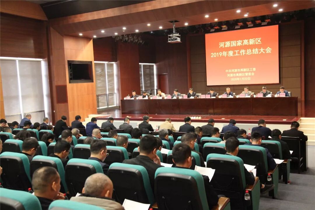 河源高新区党工委书记孙锋,党工委副书记、管委会主任刘大荣,全体干部职工及驻区单位干部职工参加大会。孙锋代表党工委、管委会作工作报告。