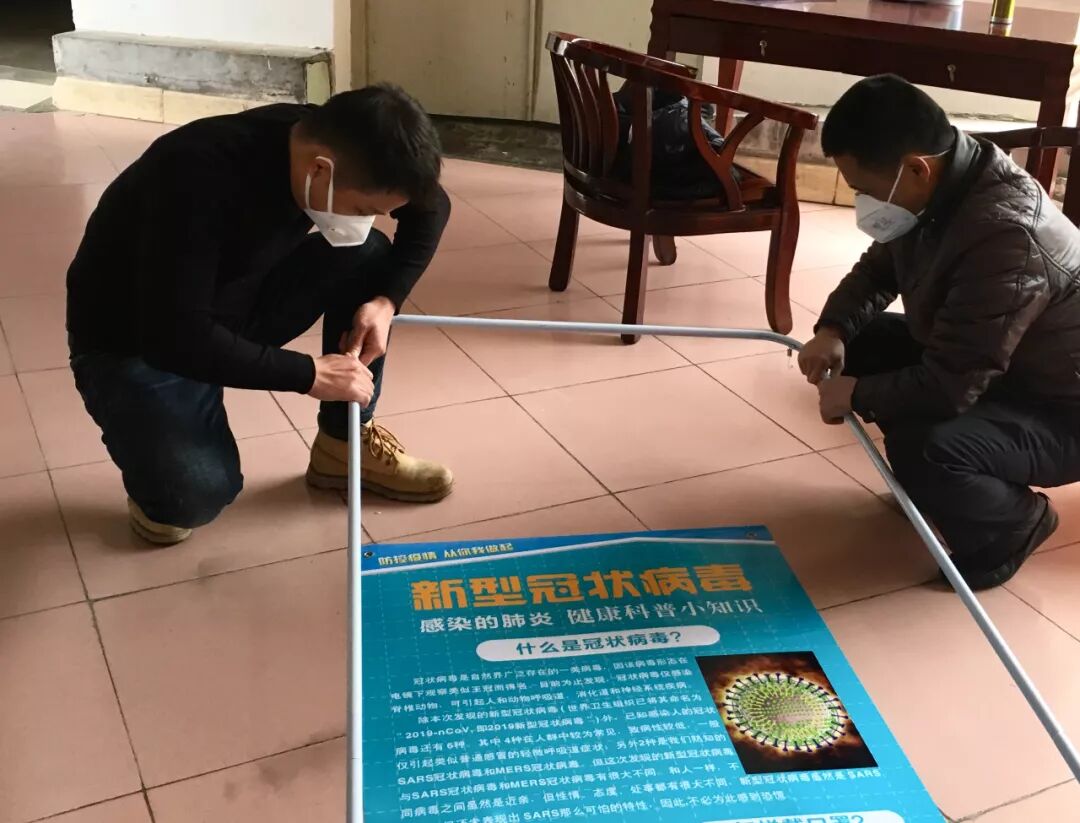 赖晓程与工作人员一起安装隔离区的宣教栏