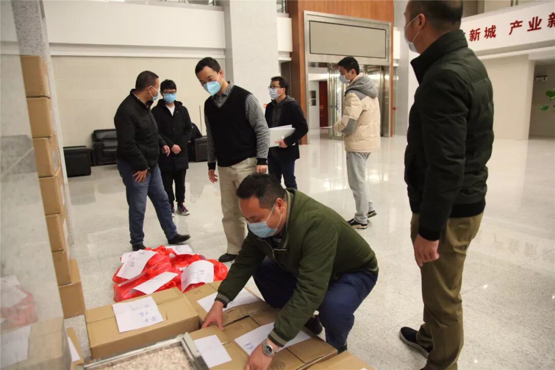 ▲河源高新区为首日复工的企业发放口罩