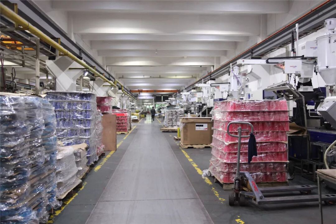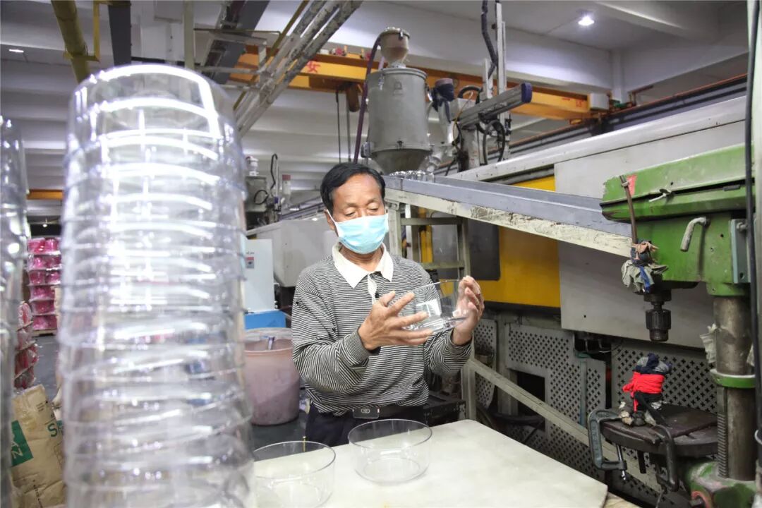 政鑫器皿的厂区外,停放着不少货车,部分是运输生产原料进来的车辆,部分是等待首批交付货品装柜的车辆。在生产车间,大部分机器已经启动,员工戴着口罩在自己的岗位上忙碌着。