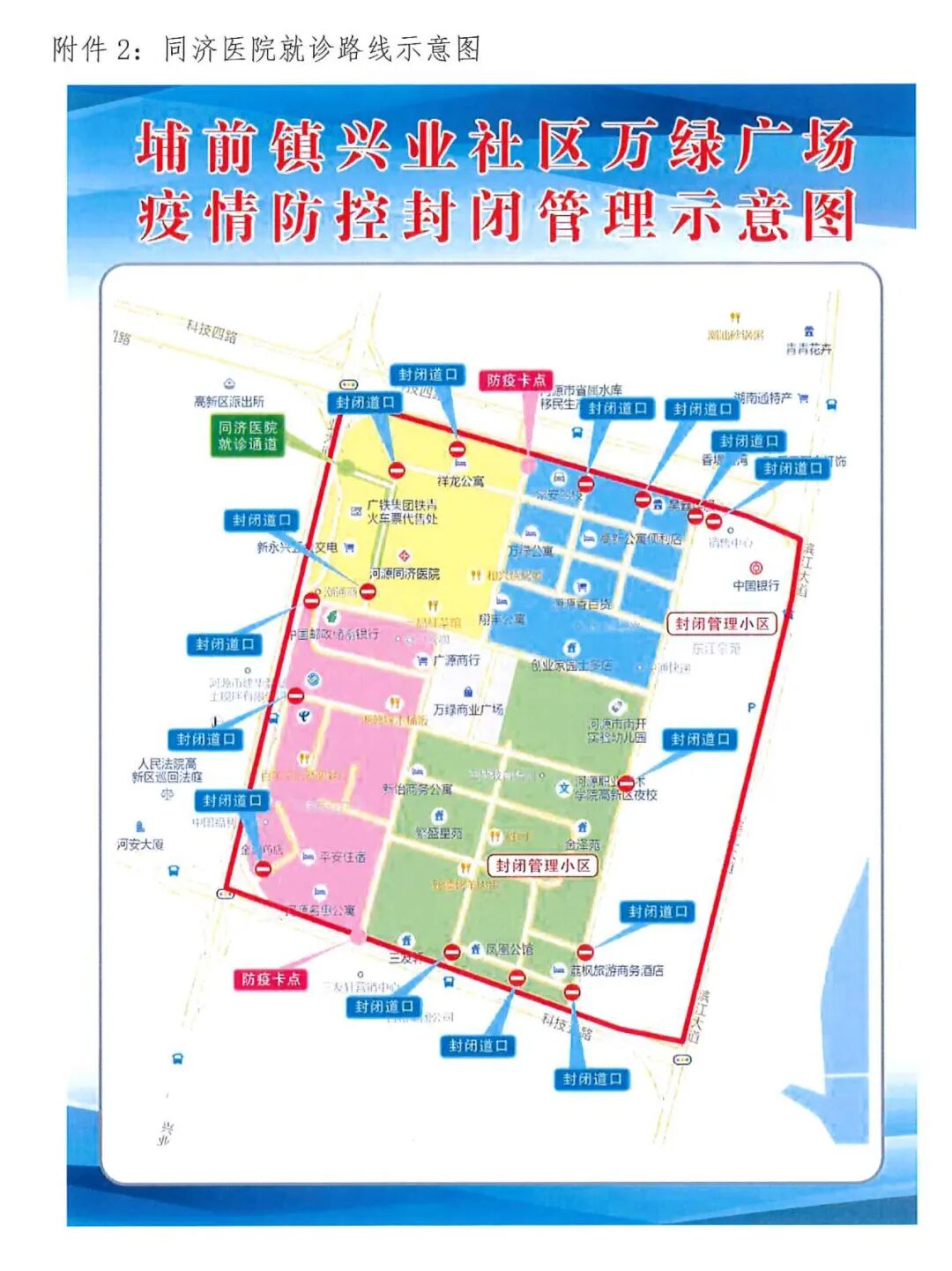 三、万绿商业中心封闭管制期间,前往同济医院就诊的人员,从同济医院兴业大道一侧(附件2示意图)通道出入。