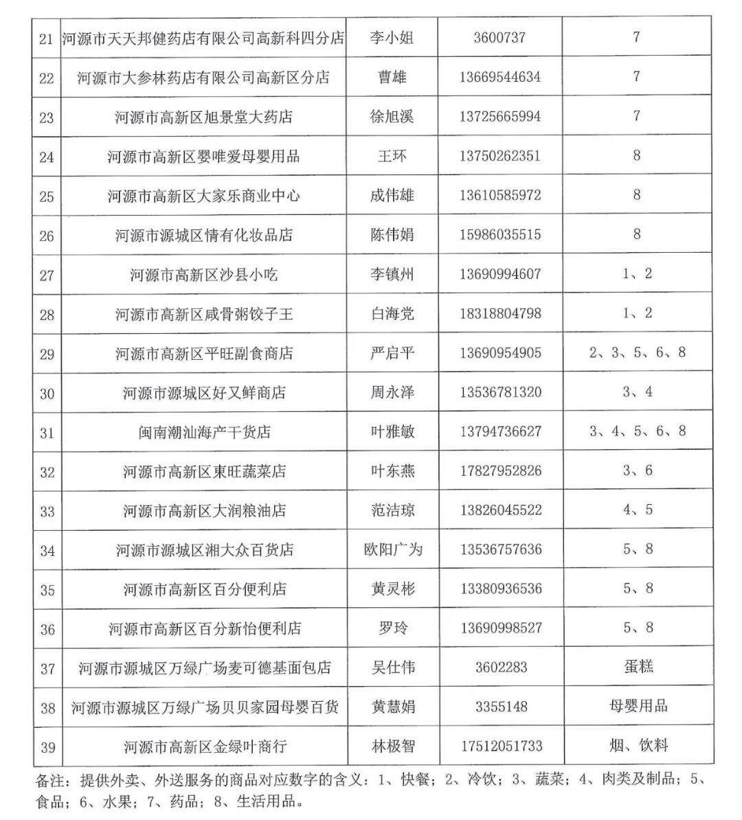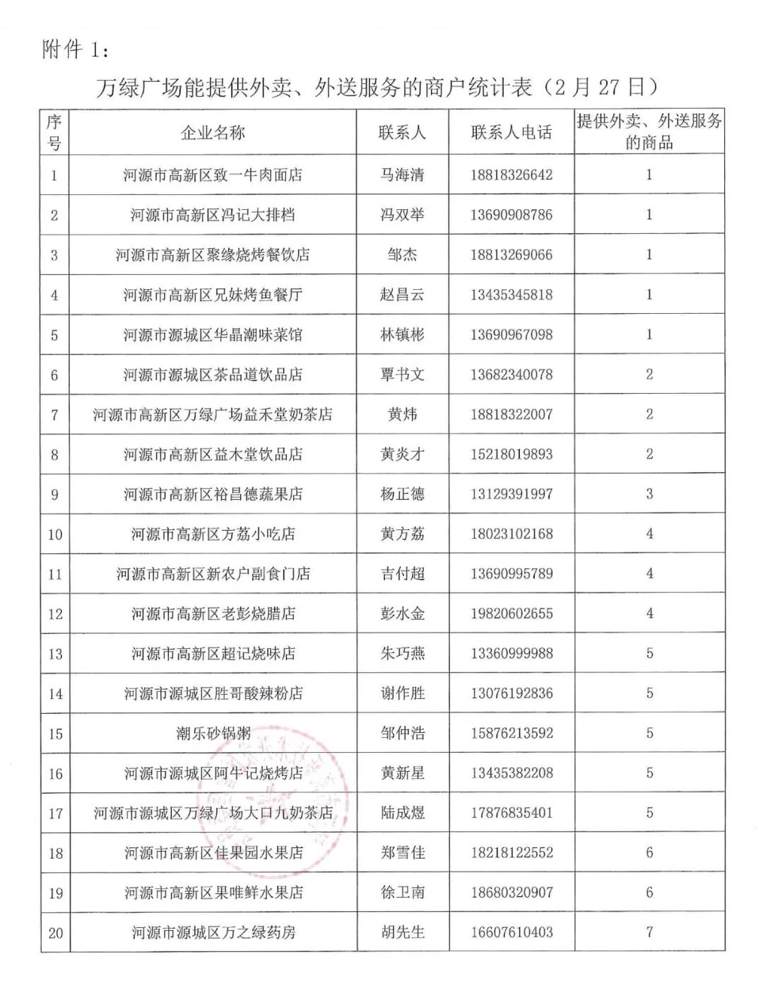 一、封闭管制期间,部分商户(附件1)提供外卖和外送服务,有需求的企业或个人,可自行与商户联系,减少群体聚集。