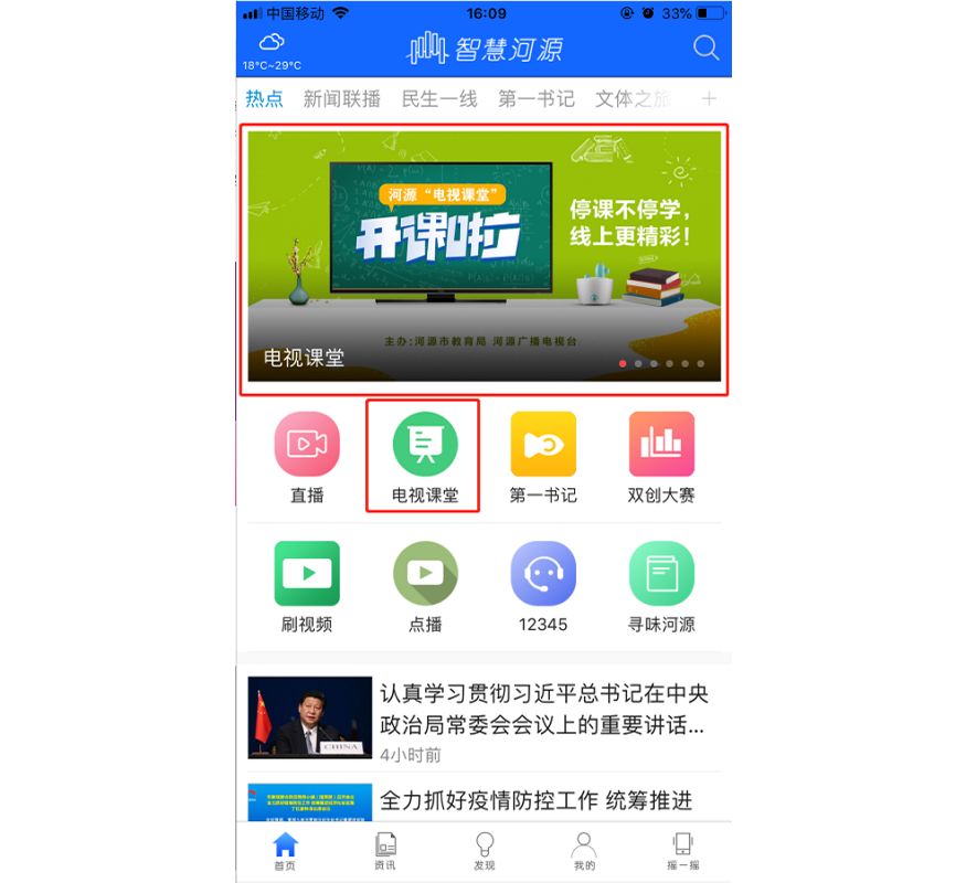 “电视课堂”通过河源电视公共频道广电网络直播信号收看、通过移动电信的IPTV电视盒收看。如因特殊情况无法收看电视的学生,还可以通过手机、电脑下载“智慧河源APP”、登录河源广播电视网站同步播放或点击回看每节课程。通过电视频道和移动点播的双重保障,达到“同上一堂课”,“不漏一人、不漏一课”的目的。