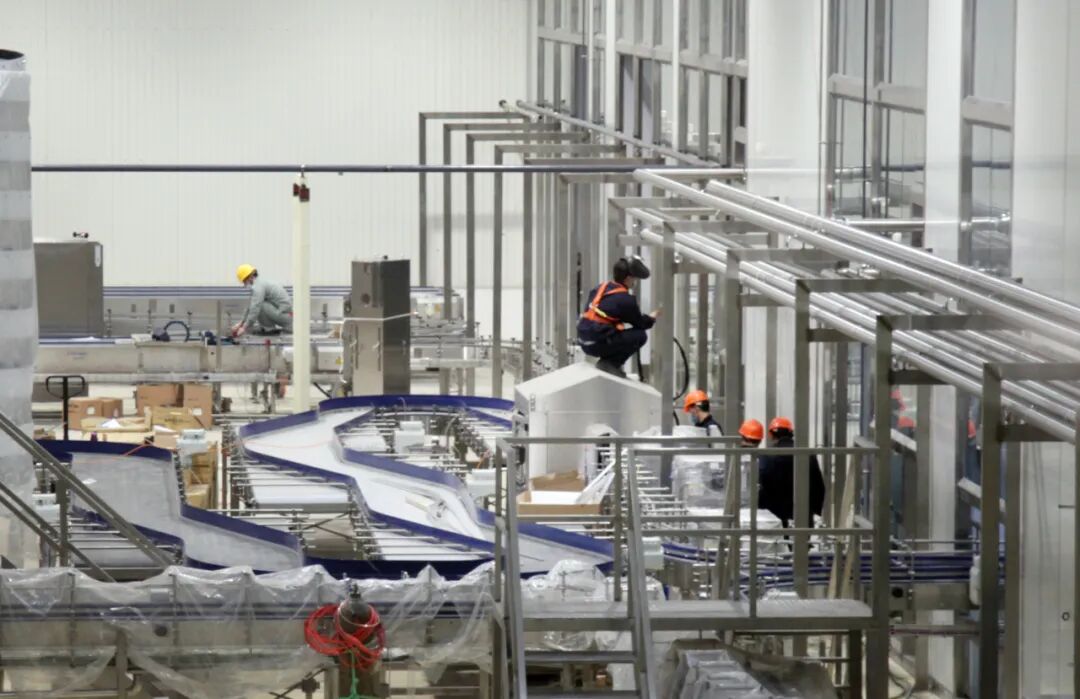 ▲农夫山泉广东万绿湖第二生产基地,工人们正在安装生产设备。