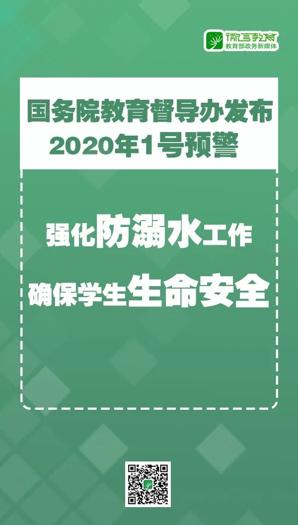 近期,全国各地气温迅速回升,汛期即将来临,溺水事故进入高发期,云南、海南等地先后有多名学生溺亡,令人痛心。国务院教育督导委员会办公室特发布2020年第1号预警,提醒各地教育部门和学校要高度重视,会同有关部门进一步强化防溺水工作,确保学生生命安全。一是加强联防联控。提请当地党委政府,按照“属地管理、分级负责”和“谁主管、谁负责”的要求,明确职责分工,定期通报情况,落实工作举措,形成联防联控机制。二是加强隐患排查。在党委政府统一领导下,会同有关部门关注重点时段、重点水域、重点人群,定期发布预警信息,全面排查安全隐患,完善安全警示标识,配置安全防护设施,认真组织巡查值守,及时做好应急处置。三是加强宣传教育。结合疫情防控形势和本地实际,会同有关部门通过广播电视、微信微博等多种渠道开展防溺水安全教育,介绍预防溺水安全常识,强化溺水警示教育。学校要在放学、放假前等关键时间节点,做好防溺水“六不”宣传,教育学生自觉远离危险水域,了解熟悉防溺水知识,增强自救自护能力。四是加强家校沟通。学校要通过家访、电话、微信、印制《致全国中小学生家长的一封信》等线上、线下多渠道、多形式,加强与学生家长的沟通联系,引导学生家长增强责任意识,切实担负起监护责任,重点做好放学后、周末和节假日等离校时段的监护陪伴,预防溺水事故发生。近期,全国多地陆续进入汛期