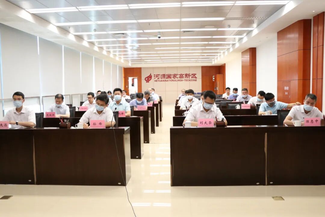 河源高新区党工委书记孙锋,党工委副书记、管委会主任刘大荣,其他班子成员李先昌、陈志中、邹元涛、邓彬斌参加会议。