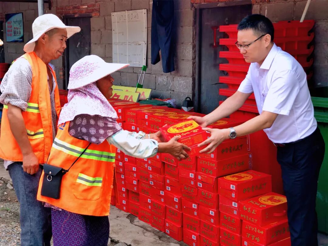6月30日,河源市高新技术开发区有限公司工会一行前往高新区绿化和环卫项目部,看望慰问在高温酷暑中辛勤工作、默默奉献的一线环卫、绿化工人,为他们送上夏日的清凉关怀,向“城市美容师们”表达敬意和感谢,并叮嘱大家高温作业时务必注意防暑降温,确保身体健康和工作安全。