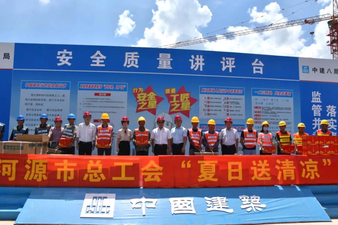 市人大常委会副主任、市总工会主席陈荣卓,市总工会党组书记、常务副主席谢红英,市总工会副主席刘志灵,河源高新区党工委副书记朱小强,中建八局河源项目部管理人员等参加活动。