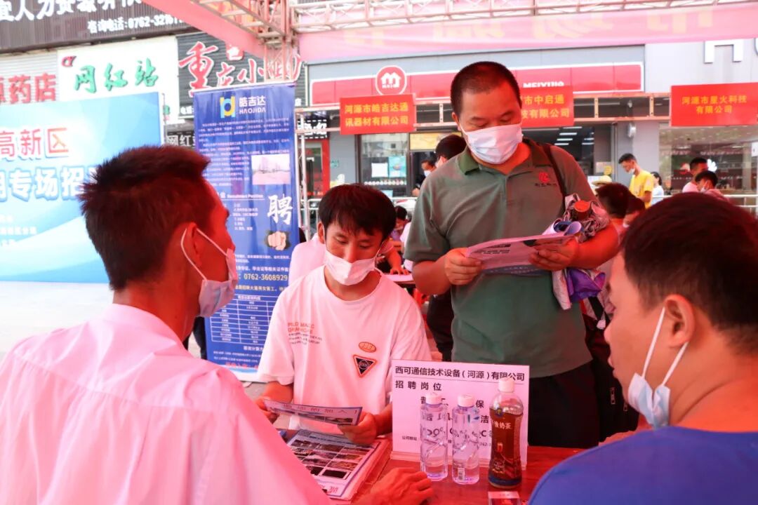 8月10日,河源市高新区“稳就业”暨企业暑期专场招聘会在市高新区万绿广场举办。