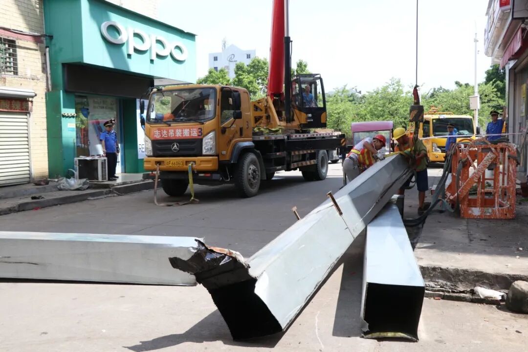 清拆行动由河源高新区管委会四级调研员黄金来带队,高新区综合执法局、国土规划建设局、环境保护和城市管理局、高新区派出所、市市场监督管理局高新区分局、高埔村两委以及相关施工人员参与清拆行动。