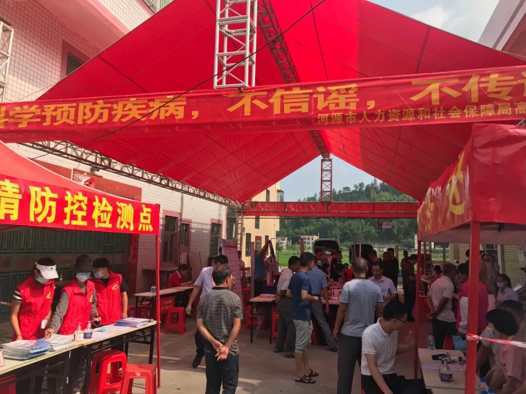 8月25日,市人社局高新区分局组织龙记集团、西可通讯等21家市高新区企业到东源县叶潭镇开展乡村振兴就业政策咨询暨精准扶贫专场招聘会。