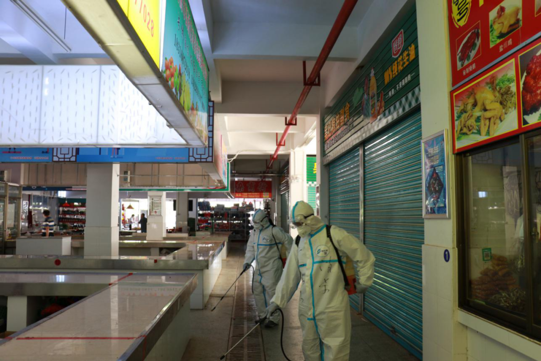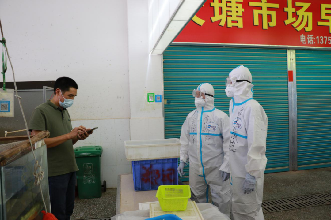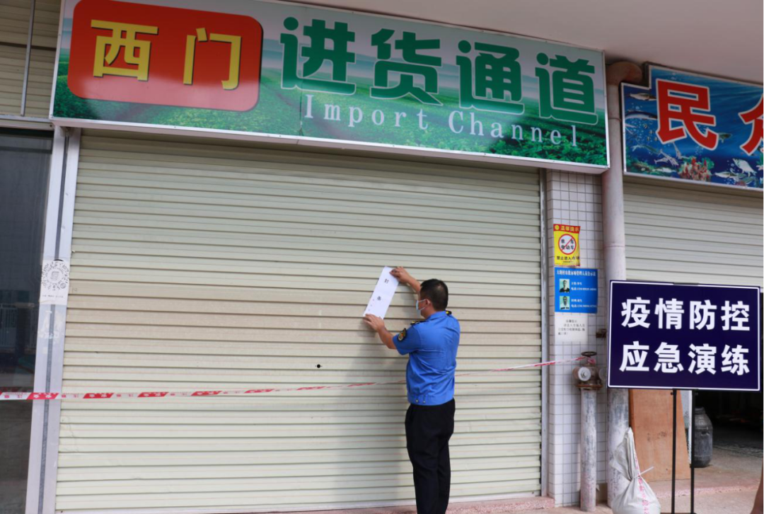 区社会事务局立即准备好防护服、护目镜、N95口罩等防疫物资;市市场监管局高新区分局人员核实阳性样品和相关档口基本信息,对经营场所及农贸市场进行暂时封闭处理;区综合执法局人员对经营场所现场警戒,禁止无关人员出入及产品流出,市场主办方在外围配合;