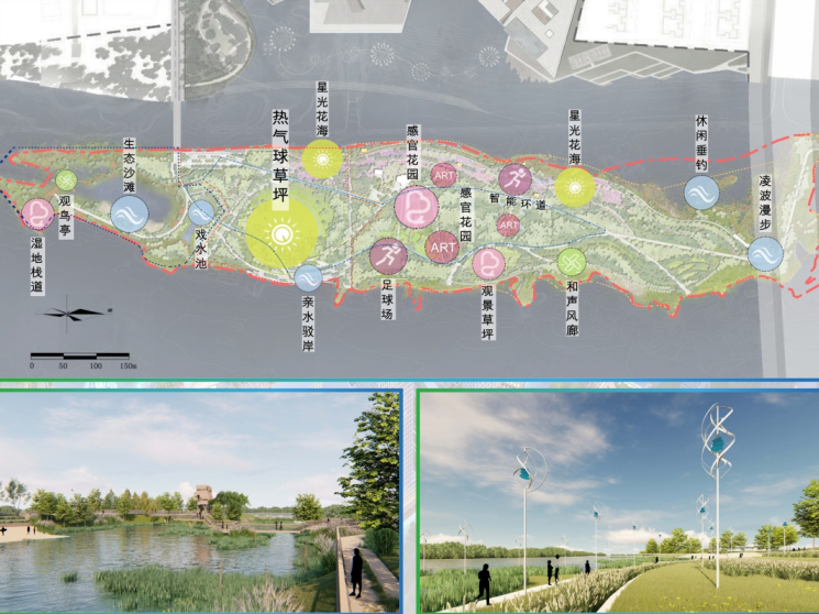 中央活力区位于河源高新区中心腹地,主要包括人工水系和周边景观工程、周边道路绿化工程和沿江堤岸景观工程,共分为A~H八个区,总投资约5.4亿元。