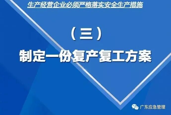 各地务必进一步摸清本地区复工复产企业底数,切实督促企业严格落实安全生产主体责任,克服“假期综合征”等不利因素影响,全力抓好复工复产安全的各项工作。 全省复工复产企业主要负责人、分管安全负责人和安全管理团队必须在岗在位,严密组织做好复工复产安全工作,确保万无一失。复工复产前,必须严格落实“六个一”要求: 各地要针对本地区企业复工复产情况,全面开展专项执法检查,重点检查企业贯彻落实“六个一”要求的情况,凡未严格落实要求的,一律不得复工复产;凡存在重大事故隐患的,要坚决依法责令企业停产整顿,不得强行复产。