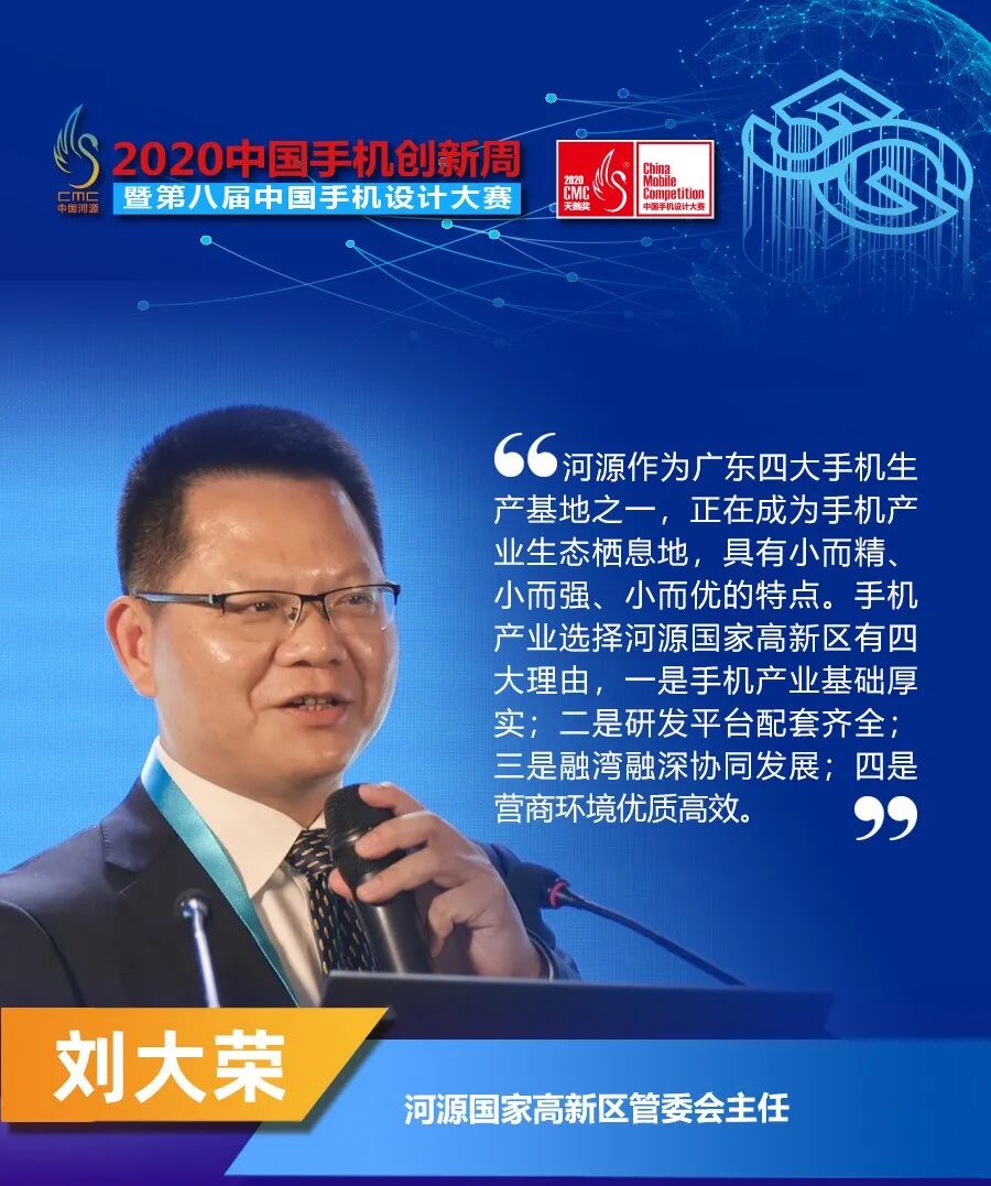 11月5日,在2020中国5G终端全球创新峰会暨第八届中国手机设计大赛天鹅奖颁奖礼上,河源国家高新区管委会主任刘大荣针对河源高新区营商环境进行推介。刘大荣表示,河源高新区作为广东四大手机生产基地之一,正成为手机产业生态栖息地。