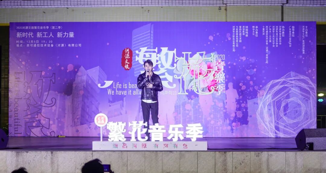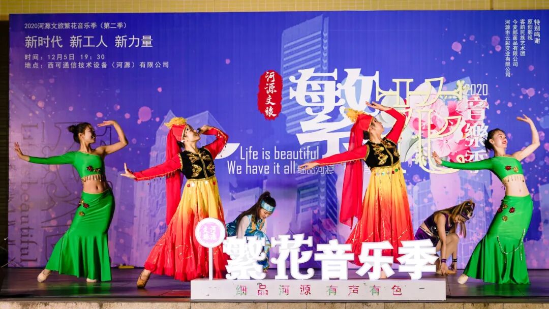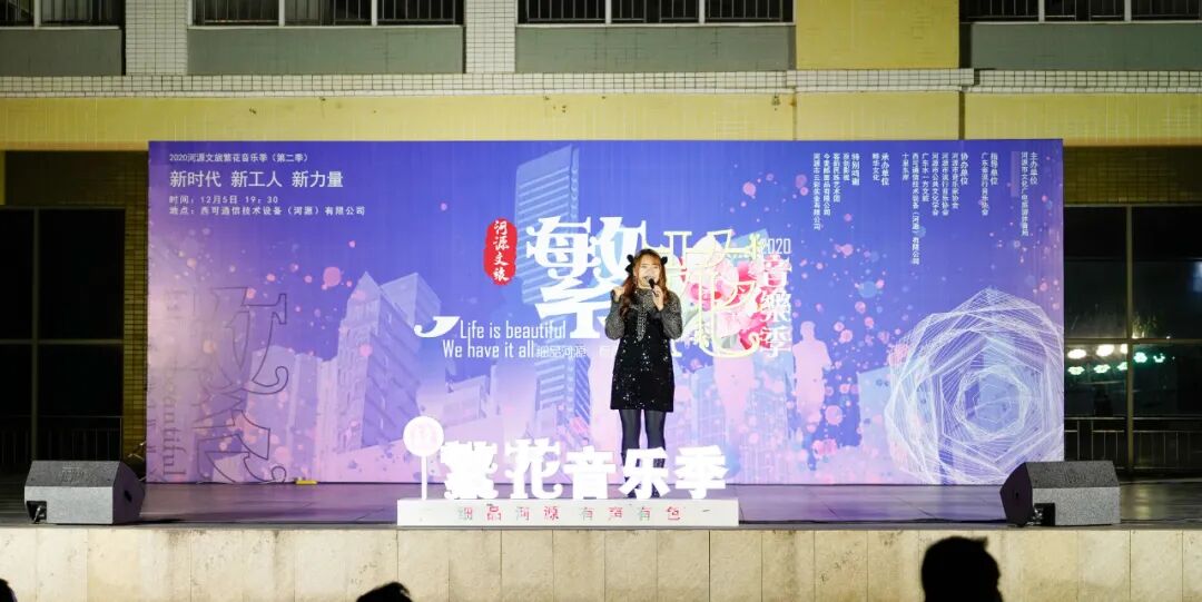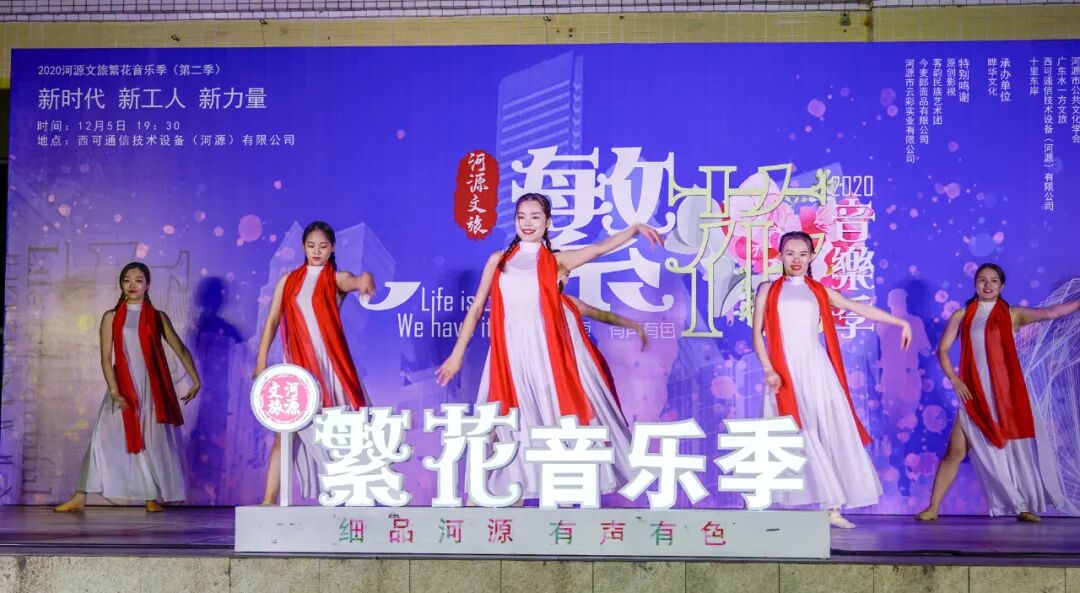 12月5日晚,由河源市文广旅体局举办的“新时代 新工人 新力量”——2020河源文旅繁花音乐季(第二季)走进高新区,来到西可通信技术设备(河源)有限公司。 活动在伯乐乐队充满力量的歌曲《活着》的激情音乐声中开场。随后,由河源市客韵民族艺术团带来的各类舞蹈,以及河源市青年流行歌手高鹏演唱的抗疫歌曲《最美的承诺》和《时间的远方》《特别的爱给特别的你》等精彩节目轮番上演。一首首动人的歌曲,一支支优美的舞蹈,为现场观众带来一场充满正能量的视听盛宴,激励广大职工争做新时代奋斗者。 节目现场还设置了送奖环节,工作人员在节目间隙送出礼品,将现场气氛推向高潮。 据了解,2020河源文旅繁花音乐季系列活动由河源市文广旅体局主办,自今年6月启动以来,陆续在全市文旅景区、乡村旅游点、文创园、商业体、古街区、文体场馆等进行演出,通过市民、游客喜闻乐见的表演形式,吸引和号召人们走出家门,参与到城市经济消费活动中去。