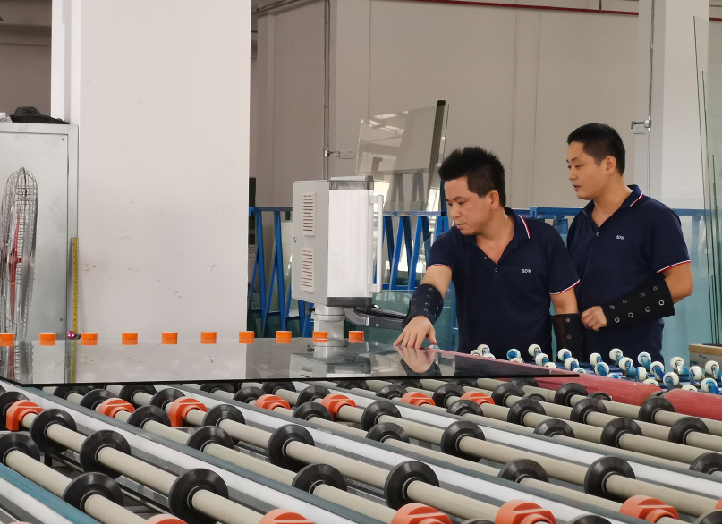 走进施达沃河源项目基地,一栋庞大的厂房建筑矗立在眼前。在厂房内,一台台大型自动化机械设备在有序运行中。在工人们操作下,每天有上千块大型防火玻璃通过上料、切割、磨边、钢化处理等工序,被生产出来,交付给下游客户,应用在国内外各类建筑工地。