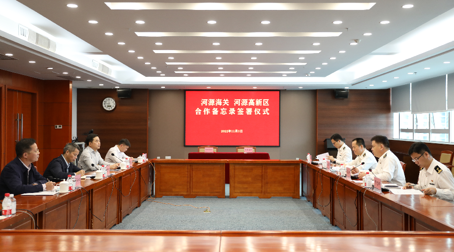 11月3日,河源国家高新区与河源海关签署合作备忘录,进一步优化高新区营商环境,促进外贸稳增长,推动园区经济高质量发展。高新区党工委副书记、管委会主任陈志中,河源海关关长刘志红,高新区党工委委员、管委会副主任欧阳振雄,河源海关副关长吴文君参加会议。
