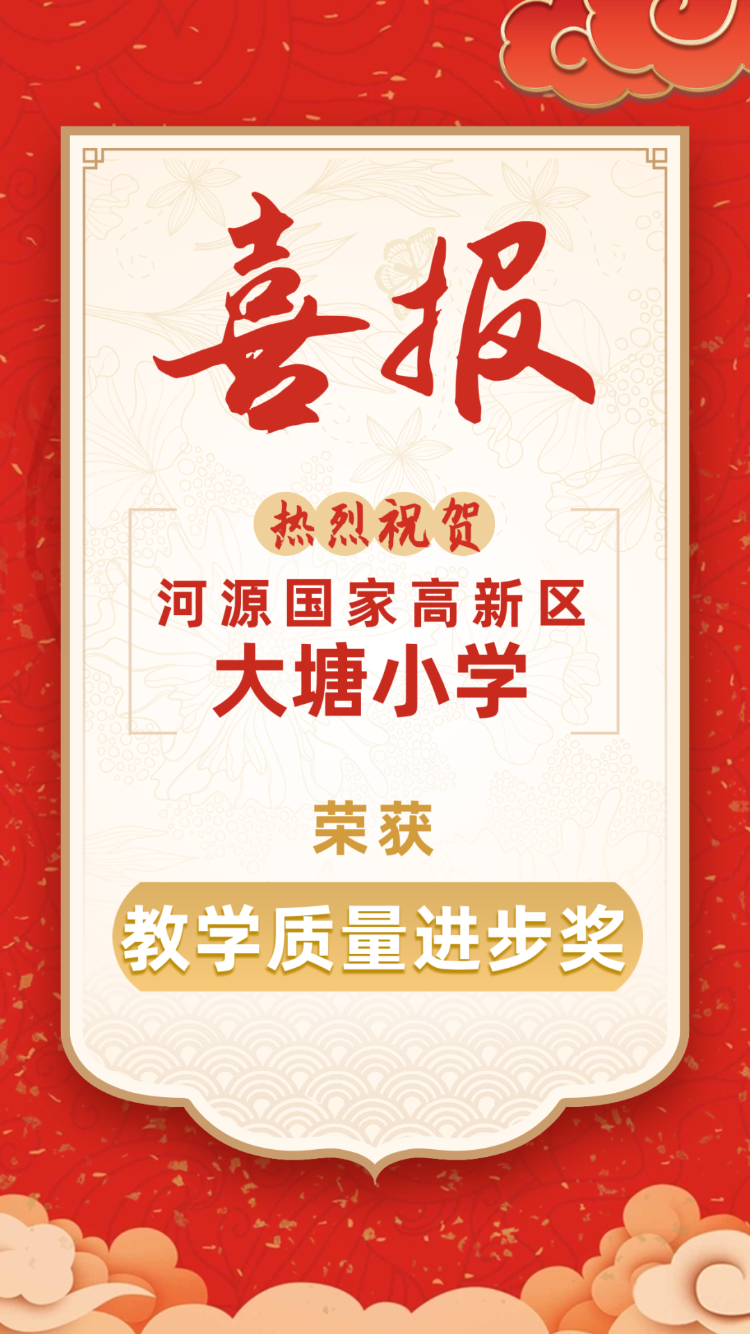 喜报!河源国家高新区大塘小学荣获教育质量进步奖!