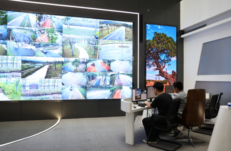指挥中心集成了956个高清摄像头,包括球机摄像机和枪式摄像机,覆盖园区主要区域。搭载智能算法的摄像头,具有智能识别功能,可识别河边区域人员危险动作、车辆乱停乱放、垃圾暴露等现象,并以预警形式发送到指挥中心,由指挥中心快速分配相关人员进行处理。