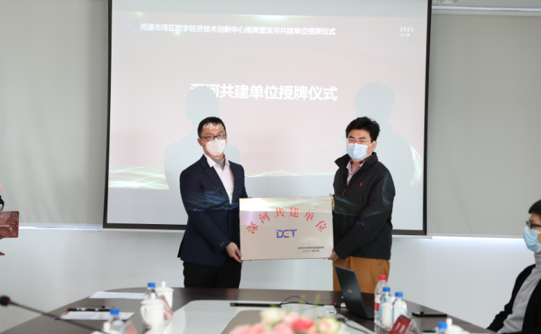 12月28日,河源市湾区数字经济技术创新中心揭牌暨深河共建单位授牌仪式在河源国家高新区举行。市政府副秘书长黄少立,高新区党工委委员、管委会副主任张志涛,南方科技大学未来网络研究院副院长汪漪,鹏城实验室移动通信技术研究所副所长李伟超,粤港澳大湾区大数据研究院院长王新玉,市委组织部、深河指挥部有关负责同志,及数字经济创新中心有关负责人和专家代表参加活动。数字经济创新中心执行主任谭台哲主持活动。