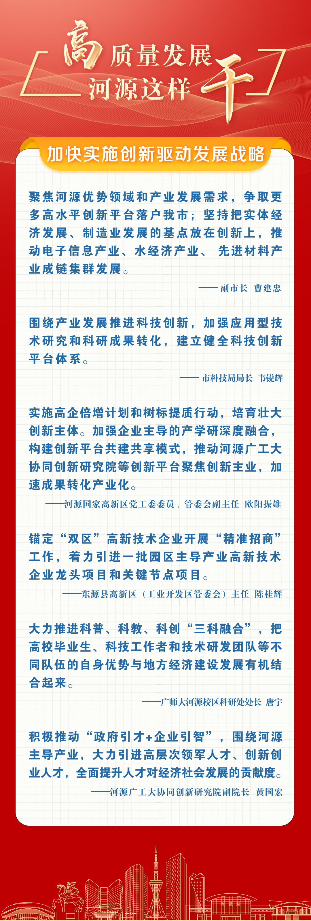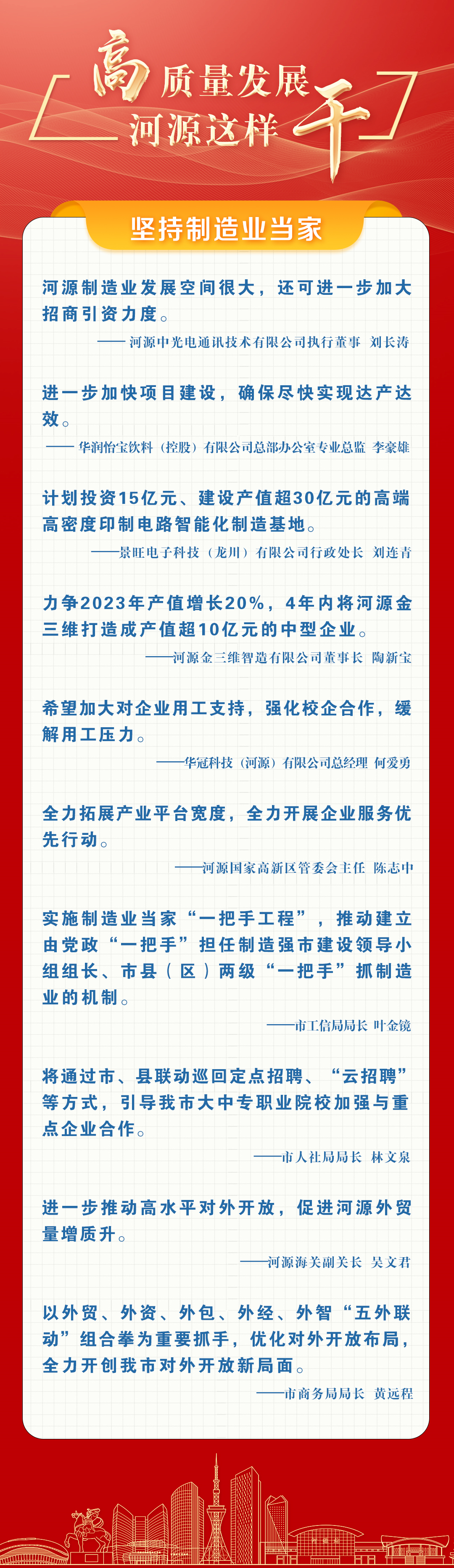高质量发展,河源这样干!1月28日,省委、省政府在广州召开新春第一会——全省高质量发展大会,吹响了高质量发展冲锋号。根据省委工作要求,当天下午,河源分会场设置5个组聚焦高质量发展展开讨论,市领导刘东豪、廖继聪、曹建忠、谢春艳、孙锋分别为各组召集人,政企学研各界代表共商发展大计、共谋发展新局。