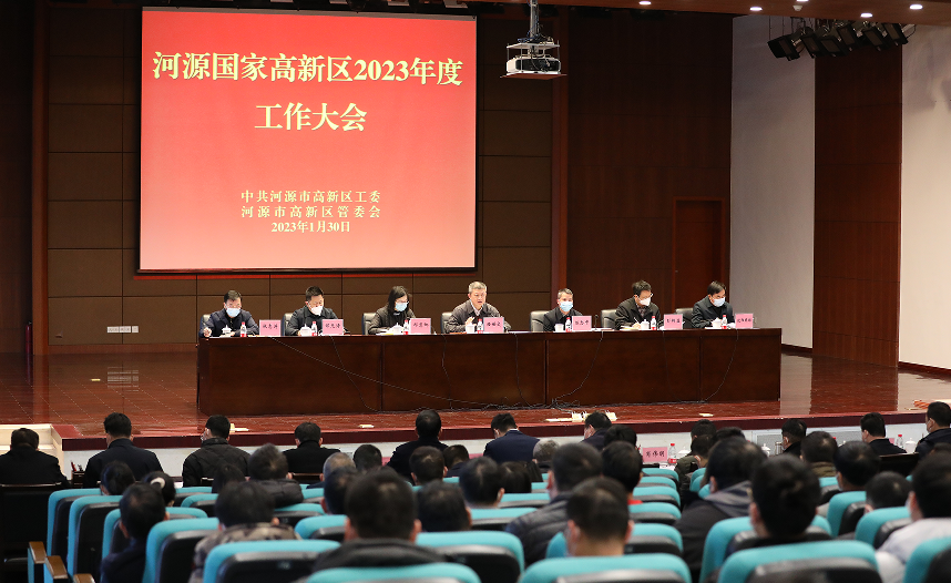 1月30日,河源国家高新区召开2023年度工作大会,认真学习贯彻党的二十大精神和中央经济工作会议精神,深入落实省委十三届二次全会精神、省委经济工作会议精神、全省高质量发展大会精神,及市委八届五次全会精神、市委经济工作会议精神、全市高质量发展现场会精神,总结回顾高新区2022年工作情况,部署2023年工作任务,凝心聚力锚定高质量发展首要任务,纲举目张做好全年各项工作。