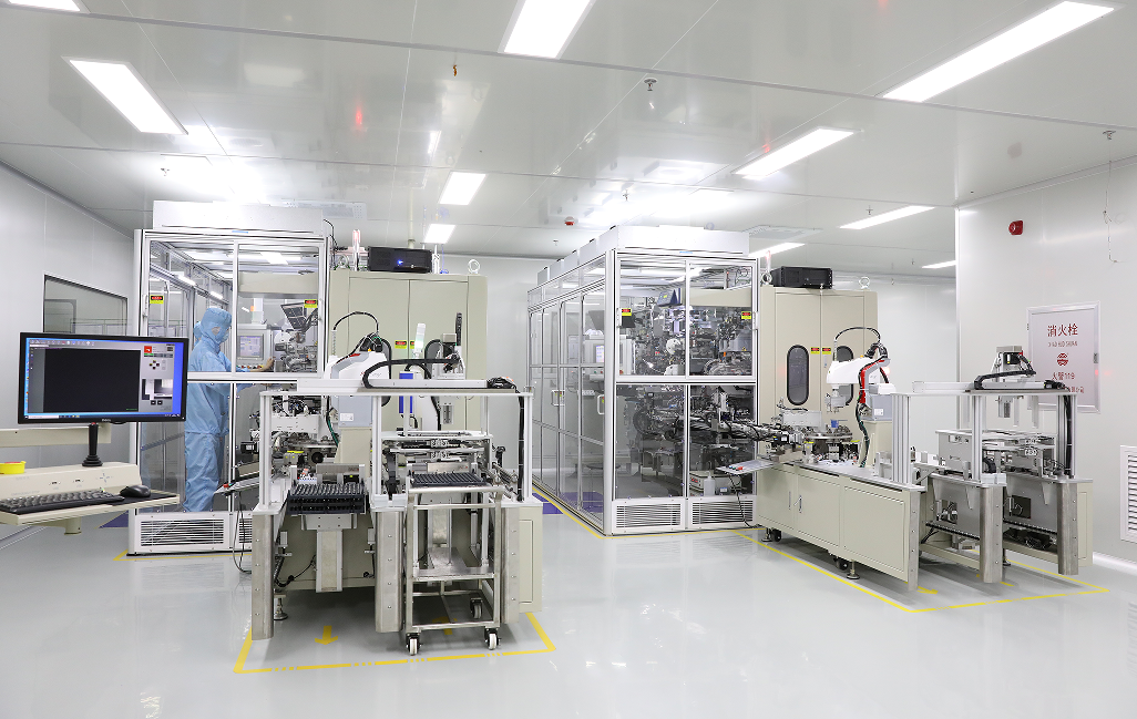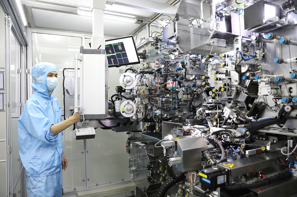 强团队、高质量、智能造、新工艺……这些都是概括新能源企业——合壹新能特点的关键词。记者在车间看到,产线上只有为数不多的技术人员在控制设备、监控在线数据,只见设备运转不见产品,无尘车间显得尤为光亮洁净。合壹新能河源公司副总经理陈永龙介绍,这是因为每条智能化产线可实现自动上料、组装、注液、检测等多道工序,产品完成第一个工序后,就会被自动传送到下一个工序直至成型,大量降低人工。