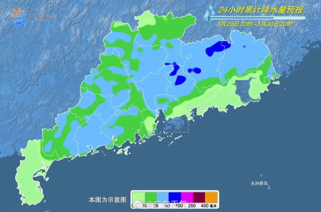 29日-30日,广东将迎来一次大雨到暴雨局部大暴雨的降水过程,伴有局地强对流天气。