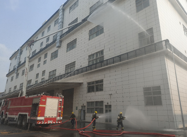此次演练模拟卓翼科技(河源)有限公司C栋二楼鞋柜储存区发生火灾。发现火情后,单位迅速启动应急预案,组织疏散楼内人员。接到报警后,高新特勤消防救援站迅速出动救援力量赶赴现场,指挥员立即组织人员组成火情侦察小组,深入火场内展开侦察,第一时间确定起火部位、燃烧物性质以及燃烧面积,并随着火势的发展,不断延伸、转移水枪阵地,消防员按照各自分工,利用器材装备,快速有效地完成灭火救援任务。