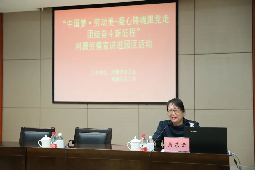 近日,按照省总工会的统一部署,市总工会举行“中国梦·劳动美一凝心铸魂跟党走 团结奋斗新征程”学习贯彻党的二十大精神广东劳模工匠宣讲活动,组织河源市劳模工匠宣讲走进河源国家高新区,为企业职工代表宣讲党的二十大精神,阐释劳模精神、劳动精神、工匠精神。