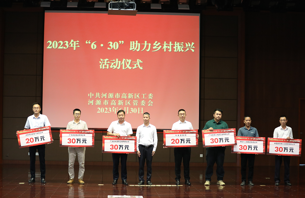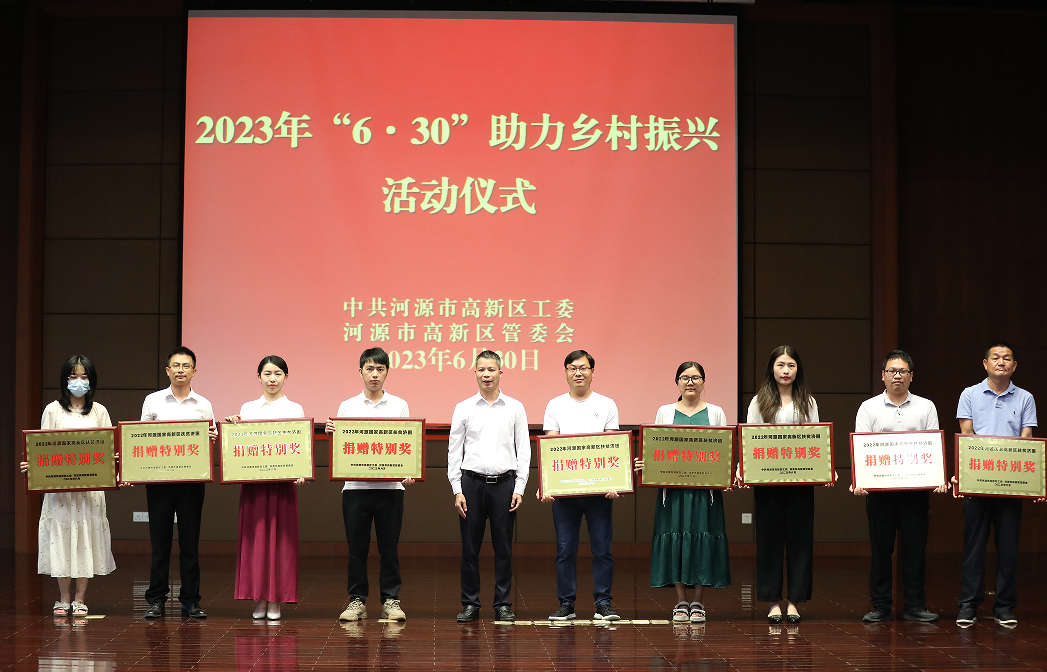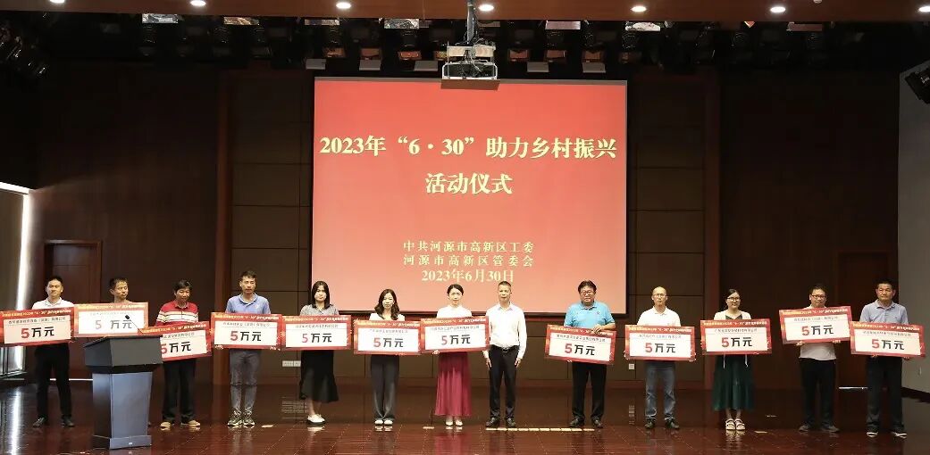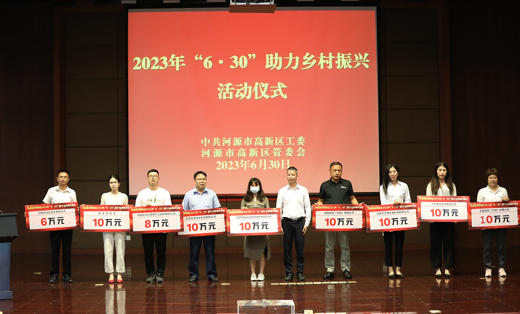 6月30日,河源国家高新区举行2023年“6·30”助力乡村振兴活动,全面贯彻落实党的二十大精神和习近平总书记视察广东重要讲话、重要指示精神,深入贯彻落实省委“1310”具体部署和省、市关于“6·30”助力乡村振兴活动的工作要求,广泛凝聚各方资源力量投身乡村振兴事业、“百县千镇万村高质量发展工程”和幸福和谐美丽河源建设。