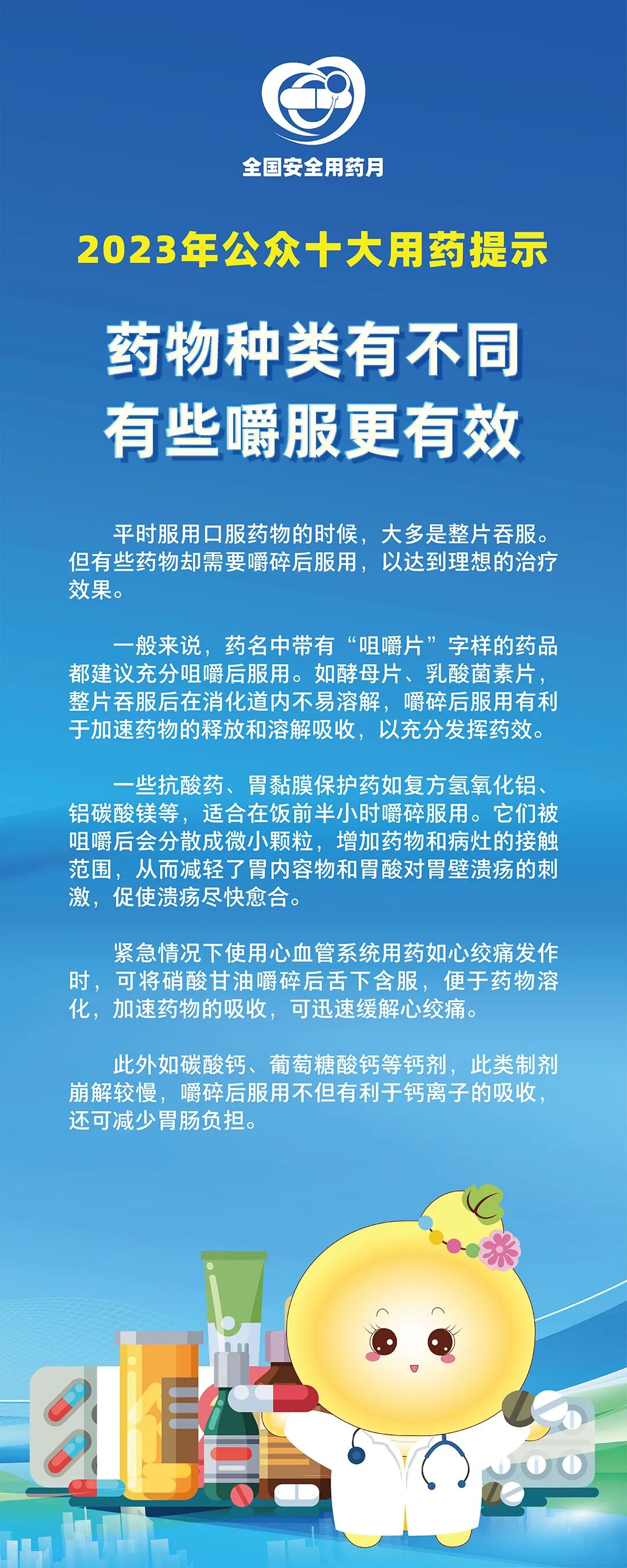 2023年11月中旬至12月中旬是“全国安全用药月”,活动主题为“安全用药 健康为民”,旨在宣传安全用药理念和知识,凝聚共筑药品安全的社会共识。药品是治病救人的特殊商品,不正确的用药行为反而会危害健康,十大用药提示提醒公众规避用药误区。