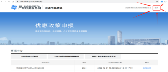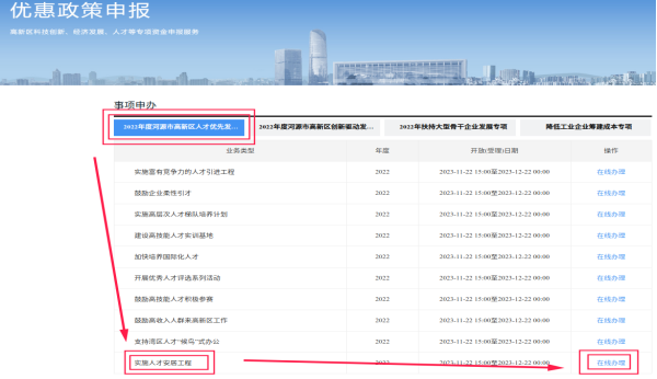 2.点击:“2022年度人才专项”→“实施人才安居工程” → “在线办理”→“立即办理”