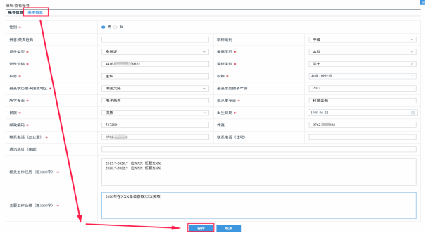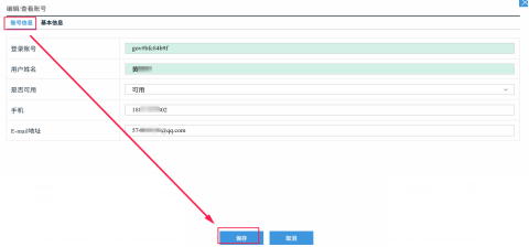 5.进入“编辑”页面后,完善账号信息和基本信息,带*号为必填项,填写完后点击“保存”;